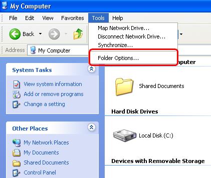Bước 1: Mở cửa sổ My Computer, trên thanh Menu, chọn Tools / Folder Options