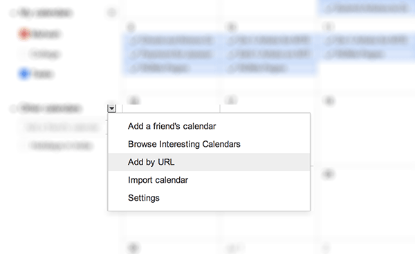 Bước 2: Trên menu cột trái của Google Calendar, nhấn vào mũi tên sổ xuống trong phần Other Calendars, chọn “Add by URL”.
