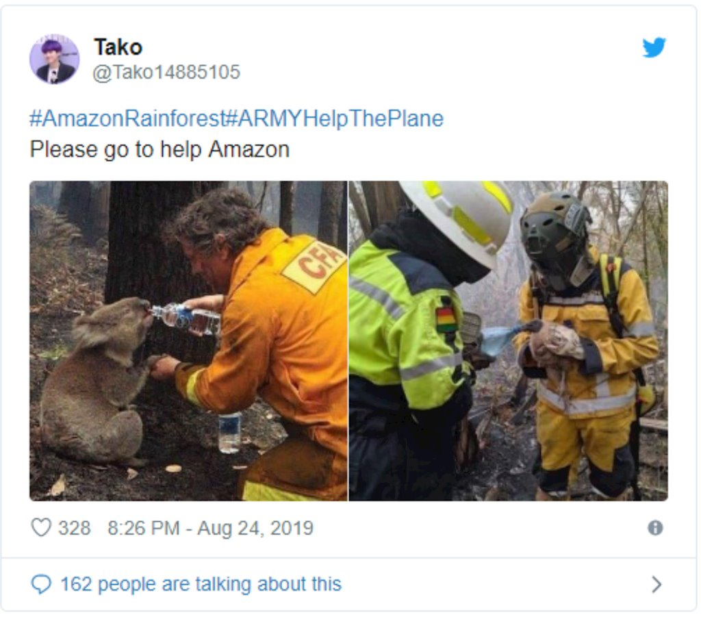 Ví dụ, một trong những hình ảnh được chia sẻ nhiều nhất trên mạng xã hội thời gian qua là hình ảnh chú gấu koala kiệt sức đang được nhân viên cứu hộ bón nước. Hình ảnh này dễ dàng lay động được trái tim người đọc – nhìn vào độ phổ biến của nó là rõ. Tuy nhiên nếu tìm kiếm hình ảnh này trên Google, bạn sẽ thấy nó có từ 2009 trong một vụ cháy rừng ở Úc.