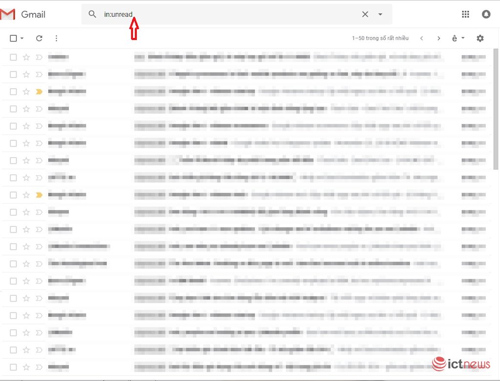 Bước 3: Bấm Enter. Bạn sẽ thấy danh sách các email chưa đọc được liệt kê bên dưới. Chọn tất cả email bằng nút chọn.