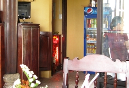 Tại một góc của di tích, đồng thời là nơi pha chế của quán được bố trí nhếch nhác, luộm thuộm. Thay vì bố trí một chỗ rửa ly, tách kín kẻ, nhân viên của quán thực hiện công việc này ngay hành lang, bậc cấp của di tích.