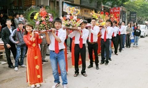 Một đám cưới tại thị trấn Yên Lạc được tổ chức theo lệ làng |