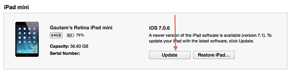 Treo Gottabemobile, khi thử cập nhật iOS 7.1 OTA (không dây qua Wi-Fi) trên iPad Air 16GB, họ gặp rắc rối vì iPad Air cần 2,5GB bộ nhớ trống để cập nhật qua OTA trong khi máy sắp hết bộ nhớ. Để giải phóng, Apple đề nghị xóa đi các nội dung không cần thiết thông qua cài đặt Usage Settings. Xóa đi 1 hay 2 ứng dụng lớn để có thêm không gian tải và cài đặt iOS 7.1 OTA là điều không bắt buộc phải làm nếu bạn đang ngồi cạnh máy tính.