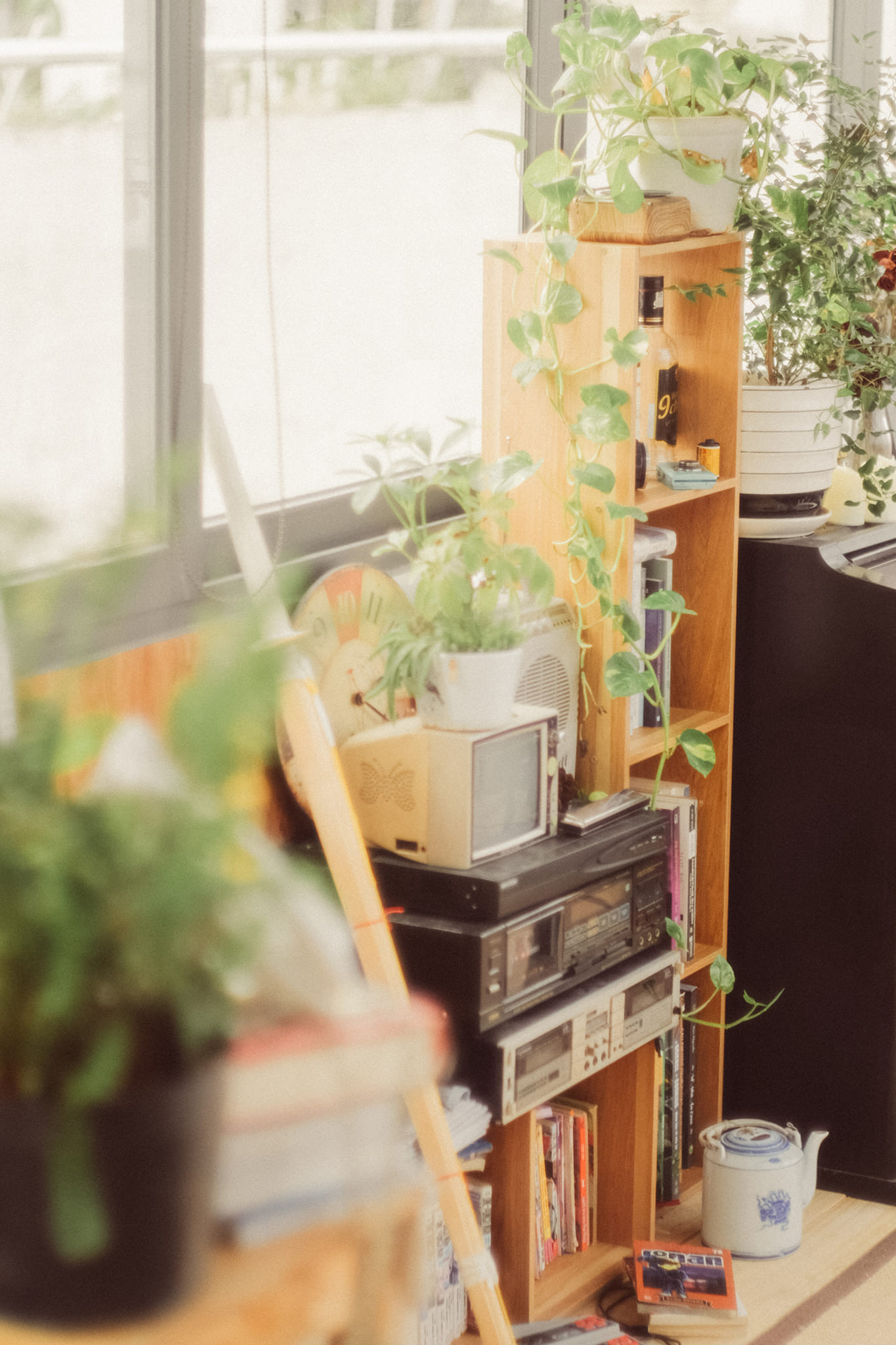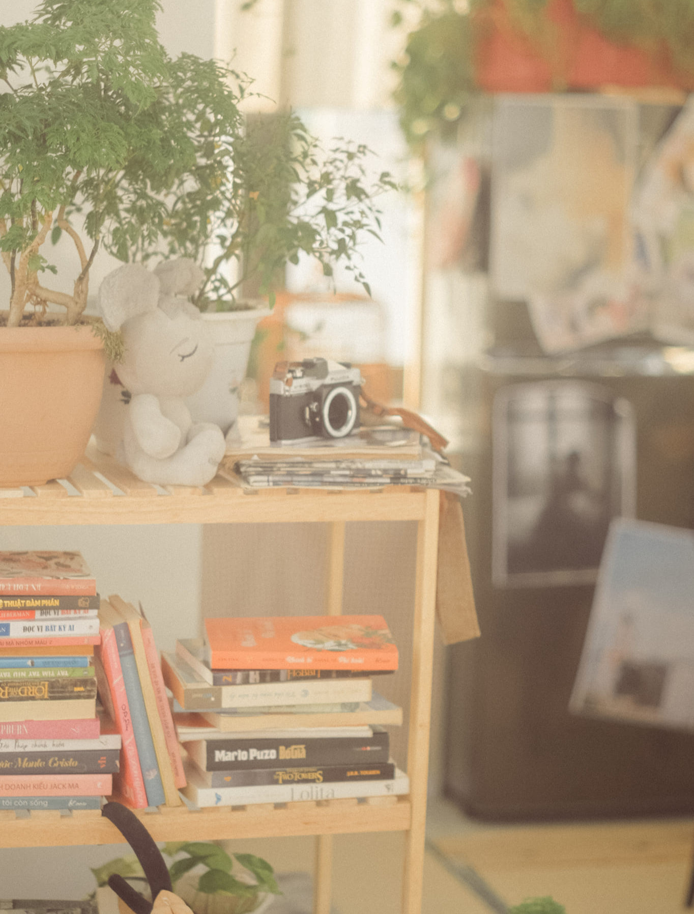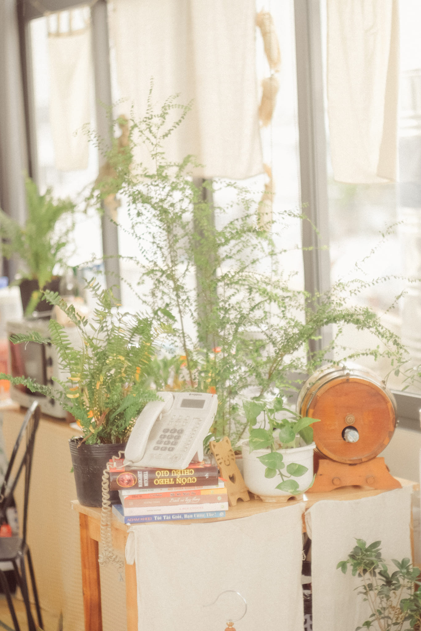 Vật dụng decor đơn giản được anh mua trên các sàn thương mại điện tử. Cây xanh là thứ không thể thiếu để phòng trở nên sinh động, bắt mắt hơn.