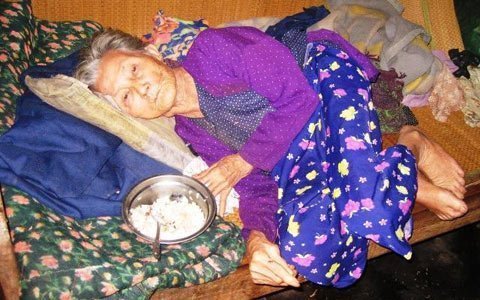 | Cụ Hồng ốm yếu nằm liệt giường gần 1 năm nay, đã thế, ăn uống lại kham khổ khiến cụ nuốt không trôi |