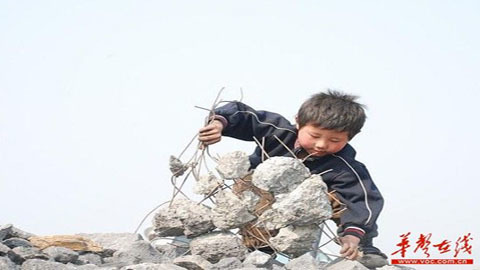 Ngày ngày cậu bé Soái Soái mới 6 tuổi ở Hà Nam (Trung Quốc) đã phải cùng bà nội đi đập những mảng bê tông khô cứng để kiếm sống.