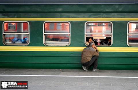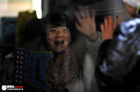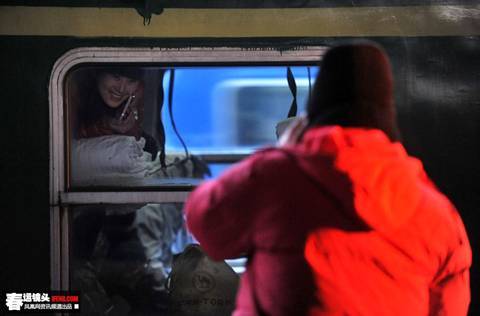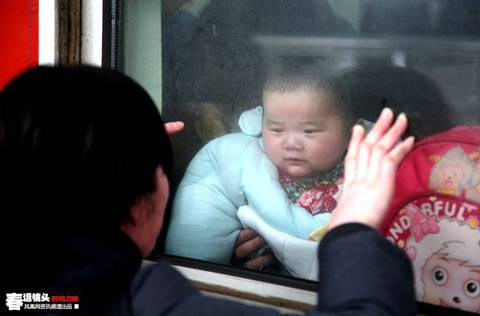 Ngày 23/1/2011, tại nhà ga Nam Kinh, một người mẹ đang tạm biệt con mình qua ô cửa kính.