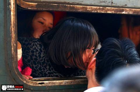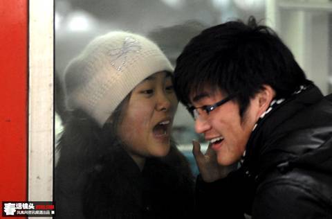Ngày 19/1/2011, tại nhà ga Bắc Kinh, một cặp tình nhân đang hôn chào tạm biệt.