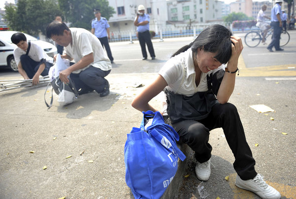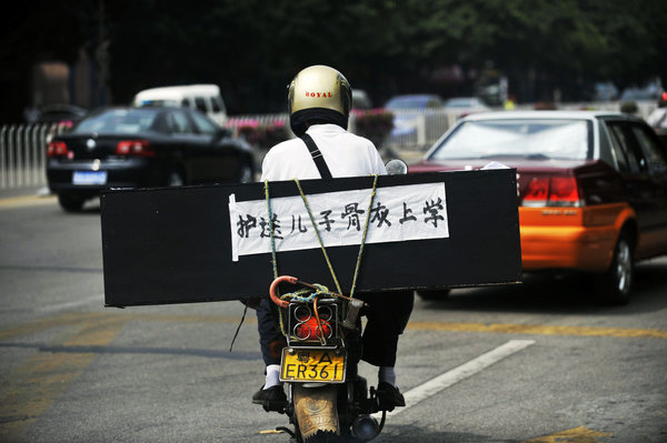 Sáng ngày 30/8/2011, Hoàng Quần Chân chở tro cốt của con đựng trong một chiếc thùng gỗ đặt sau xe máy trên đường Vân Sơn, khu Hoa Đô. Sau lưng anh còn đeo chiếc ba lô bên trong có bài thi thử đạt 99 của con.