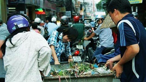 17h50 hôm qua 3/8, tại ngã ba đường Phùng Khoang (Thanh Xuân, Hà Nội), một chiếc xe rác đổ ập xuống đường. Mồ hôi nhễ nhại, bác công nhân già đã cố hết sức mà không kéo được chiếc thùng xe ra khỏi đống rác. Hàng loạt phương tiện di chuyển rất khó khăn, thế mà, rất nhiều người chỉ dừng lại nhìn, không ai chịu xuống xe, giúp đỡ.