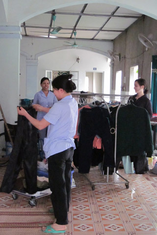 Theo cánh tay chị chỉ, chúng tôi nhìn ra khoảng sân phía trước mặt. Khoảng không quang đãng ấy đã bị giăng kín những chiếc chăn, màn vẫn còn sũng nước – kết quả cho buổi sáng làm việc vất vả của tổ dọn phòng.