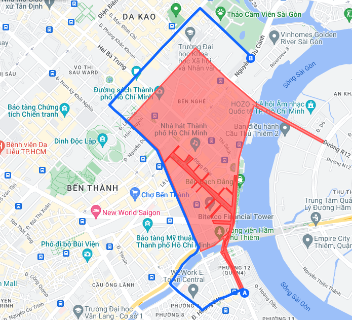 Vành đai phong tỏa được tạo bởi các tuyến đường Võ Văn Kiệt – Tôn Đức Thắng – Lê Duẩn – Pasteur (quận 1); đường Nguyễn Tất Thành, quận 4: Đoạn từ đường Hoàng Diệu đến cầu Khánh Hội (kể cả cầu Khánh Hội); Cầu Thủ Thiêm 2 (cầu Ba Son) với phần cầu chính và các nhánh cầu (kể cả đường R12, TP Thủ Đức).