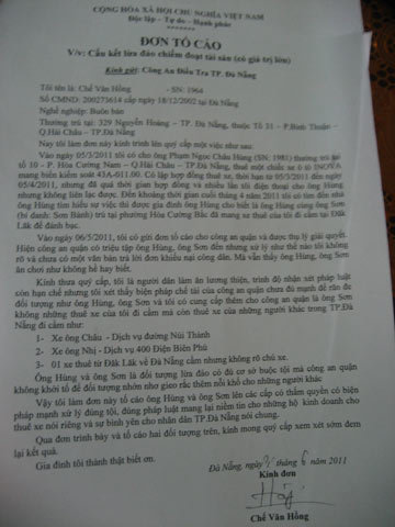 | Đơn tố cáo của bị hại gửi đến cơ quan chức năng |