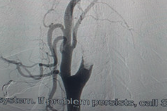 Hình ảnh gốc động mạch cảnh trong phải bị tắc (trái) và tái thông hoàn toàn sau can thiệp (phải). Ảnh: BVCC