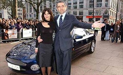 Mr. Bean và vợ bên chiếc Aston Martin V8 Zagato.
