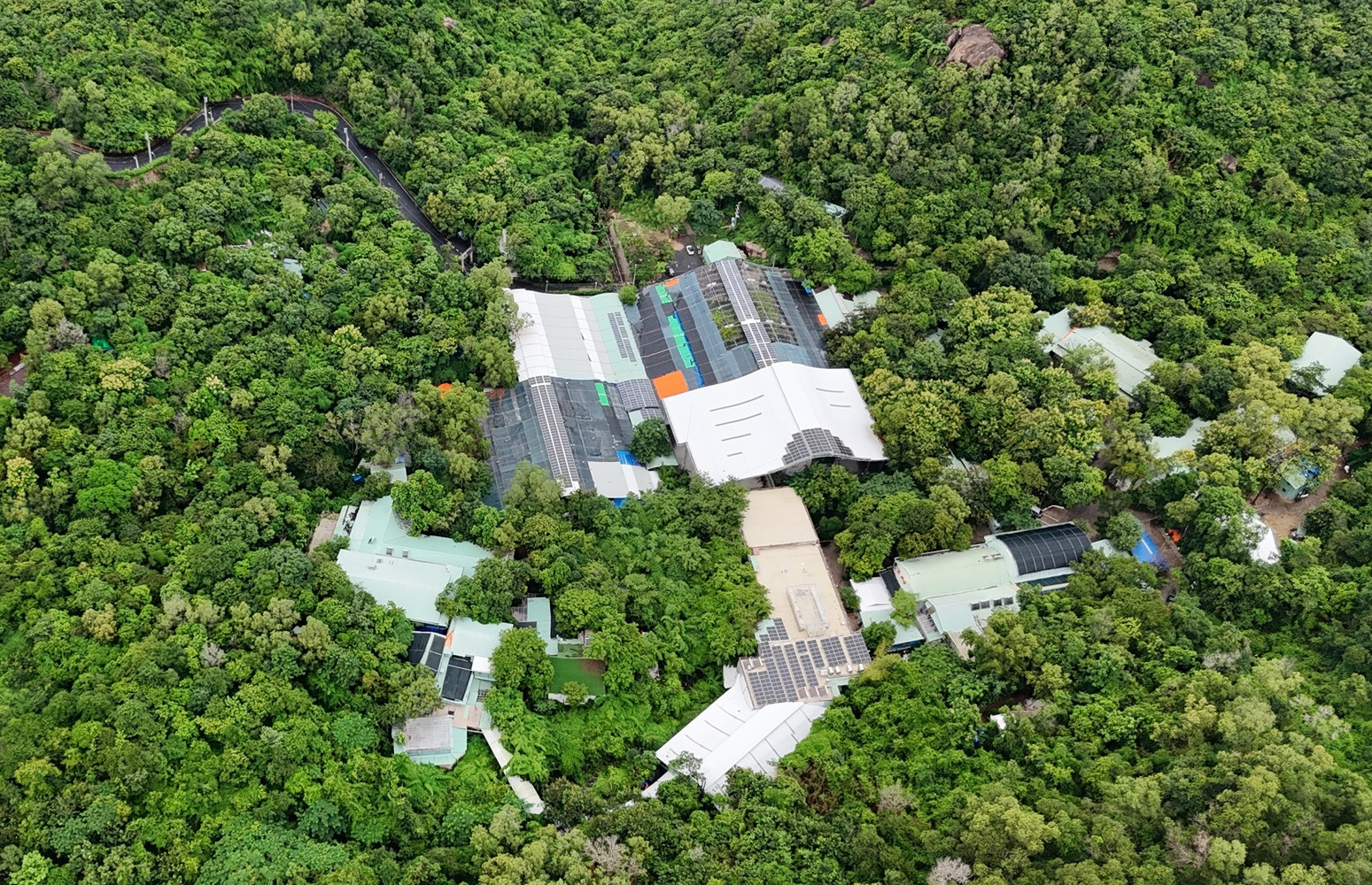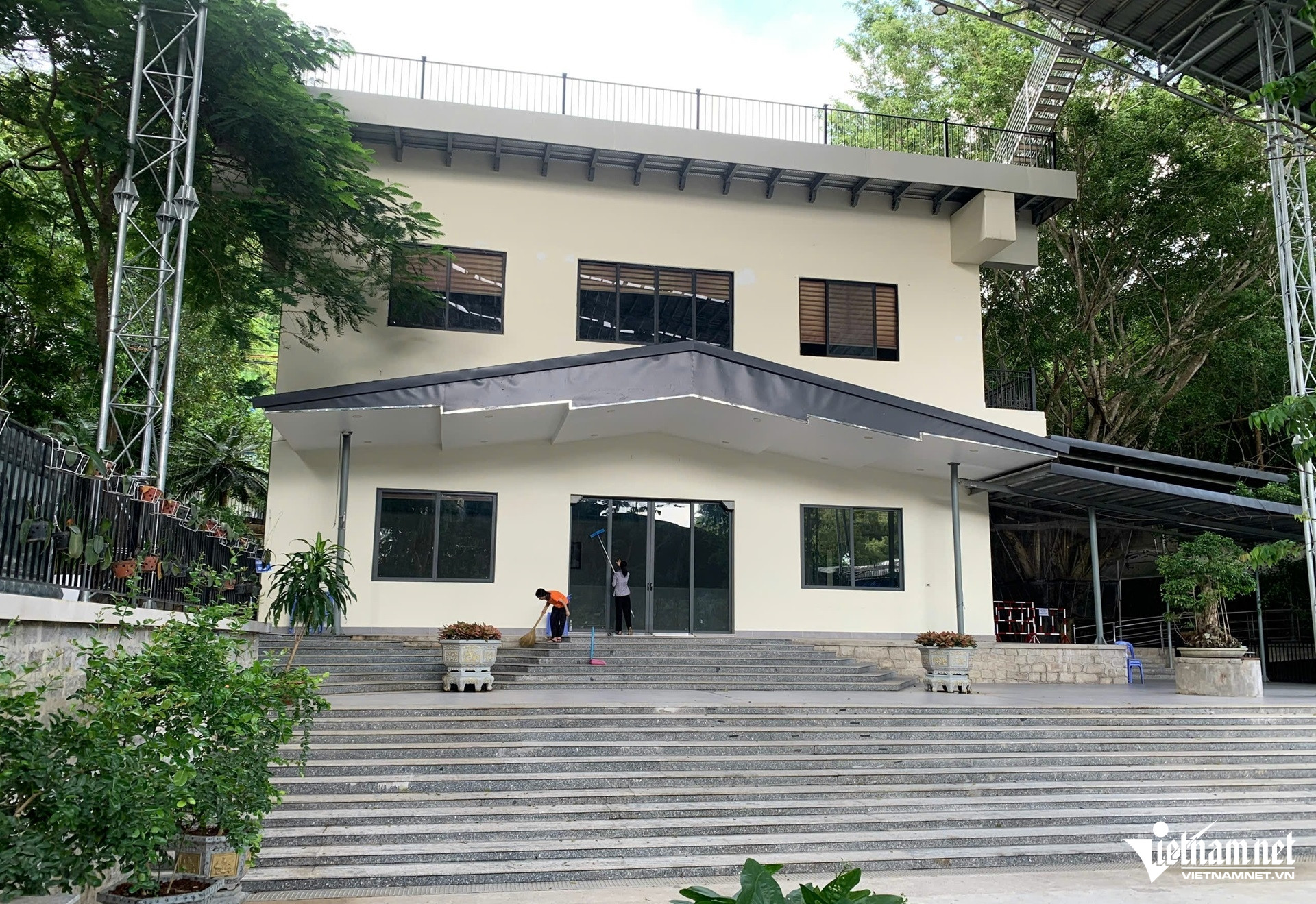 Theo ghi nhận của PV, ngoài một số công trình xây kiên cố bằng bê tông như chánh điện, khu nhà nội bộ, nhà vệ sinh... thì những công trình còn lại được dựng chủ yếu bằng khung thép, sân nền được đổ bê tông...