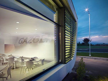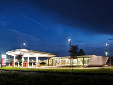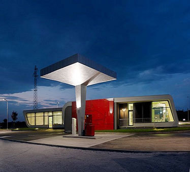Quả thực, trạm xăng với diện tích 400m2 này có thiết kế rất ấn tượng, với những đường nét đơn giản mà sang trọng cùng hệ thống đèn chiếu sáng lung linh và những bức tường bằng kính trong suốt.