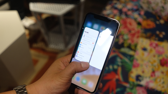 Do nút Home đã bị loại bỏ, người dùng sẽ vuốt từ dưới lên để vào cửa sổ đa nhiệm. Nếu muốn chuyển giữa các ứng dụng, cần phải quét một đường vòng cung từ cạnh bên này qua cạnh bên kia của máy.