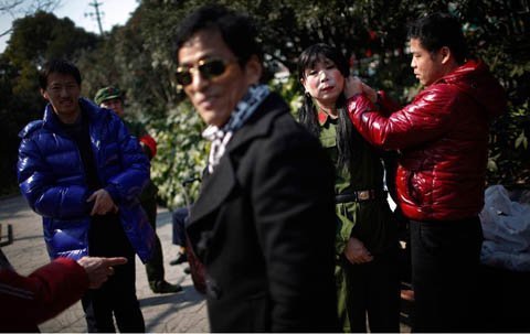 Xiao Cao thay trang phục với sự giúp đỡ của một người bạn.