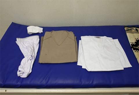 Kỷ luật quân đội hiện diện ở khắp mọi nơi, kể cả trong cách tù nhân gấp quần áo. |