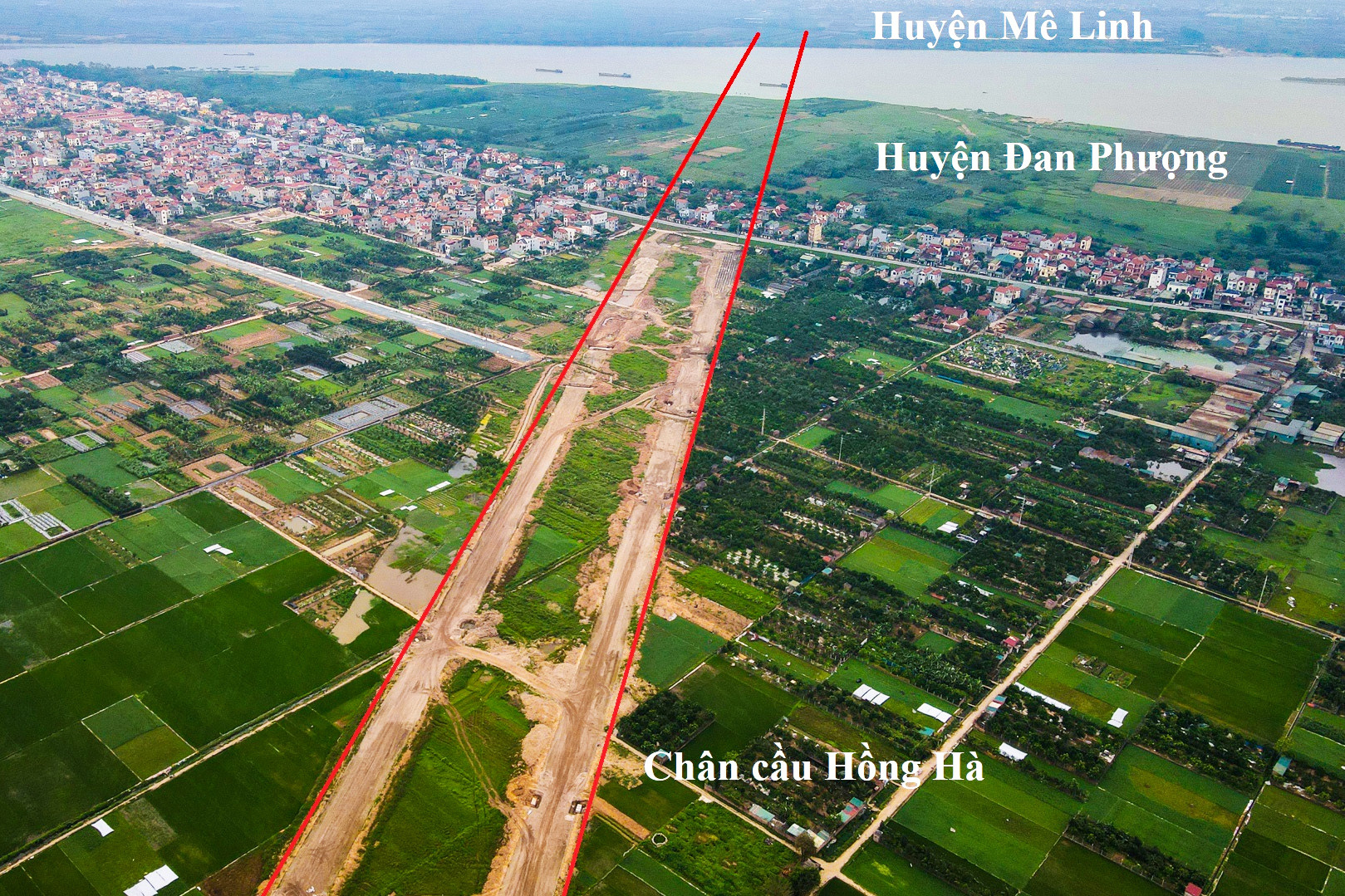 Cầu Hồng Hà bắc qua sông Hồng kết nối địa phận 2 xã Ô Diên - Mê Linh. Ảnh: Đức HoàngSau khi hoàn thành, cầu Hồng Hà sẽ kết nối trực tiếp với đường Vành đai 4 - Vùng Thủ đô Hà Nội. Ảnh: Đức Hoàng