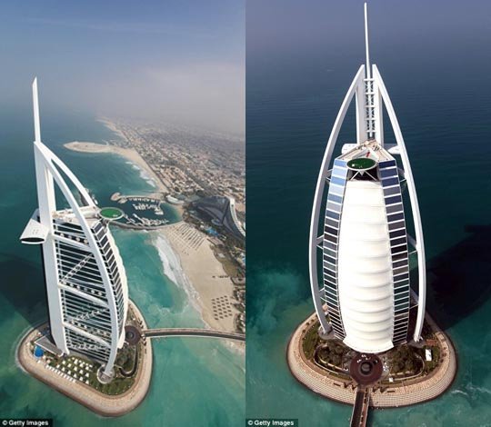 Burj Al Arab là tòa nhà cao nhất được sự dụng như một khách sạn sang trọng và được mệnh danh là "khách sạn 7 sao đầu tiên trên thế giới".
