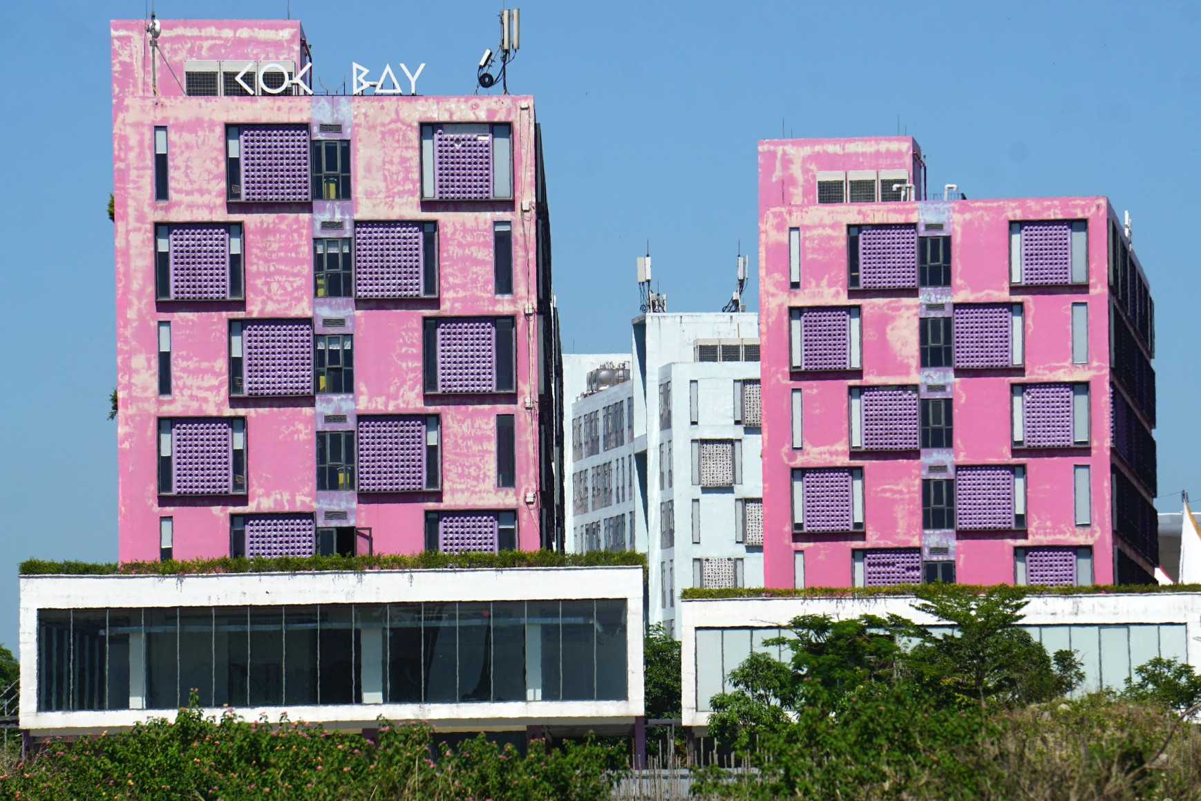 Bên trong dự án, nhiều hạng mục đang thi công dang dở, bỏ hoang, sắt thép hoen gỉ. Cây cỏ mọc um tùm. Hàng nghìn căn hộ condotel mới chỉ xong phần thô nằm bất động.