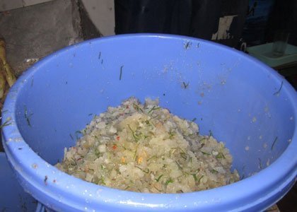 Các khay đựng nhân trộn cũng được đánh rửa sạch sẽ và để ở trên một chiếc bàn cao. Tuy nhiên, các khay này đều không có nắp đậy.