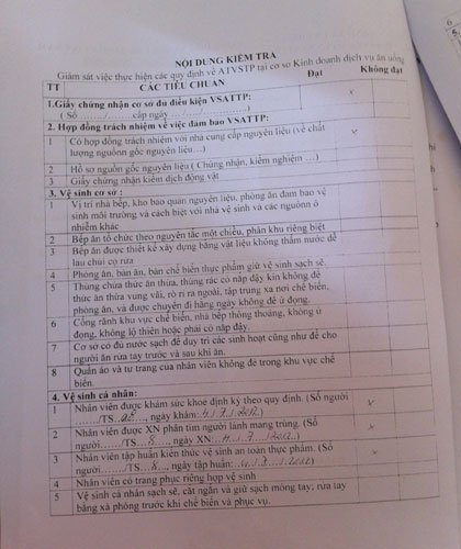 Điều đáng nói là, trong biên bản kiểm tra vệ sinh an toàn thực phẩm của xã La Phù ghi ngày 14/9/2012 của đoàn kiểm tra liên ngành xã, tại cơ sở sản xuất bánh kẹo Ngọc Khánh, thì trong bảng nội dung kiểm tra với hàng chục nội dung dài khoảng 2 trang giấy A4, thì chỉ có khoảng 5 mục được đánh dấu “x” ở ô “Đạt”.