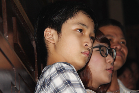 Đăng Quang đứng bên cánh gà cổ vũ mẹ cùng các chị