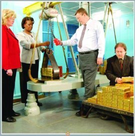 Kho vàng của Cục Dự trữ Liên bang Mỹ tại khu tài chính New York được coi là kho vàng lớn nhất thế giới với khoảng 1,2 triệu tấn vàng.