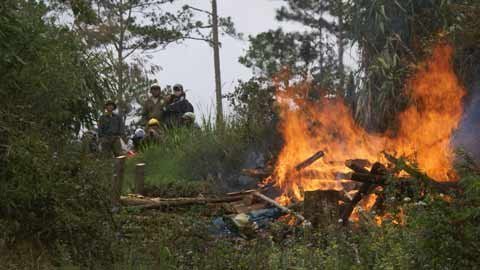 Những lán trại của “thiếc tặc” bị lực lượng giải tỏa thiêu hủy