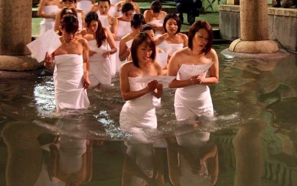 Vào 3 giờ 30 chiều, lễ hội chính mới bắt đầu. Những người đàn ông chỉ mặc fundoshi, loại khố bằng vải màu trắng, trong khi đó phụ nữ không mặc gì, quấn quanh mình một tấm vải trắng, biểu diễn trống taiko và ngâm mình dưới nước.