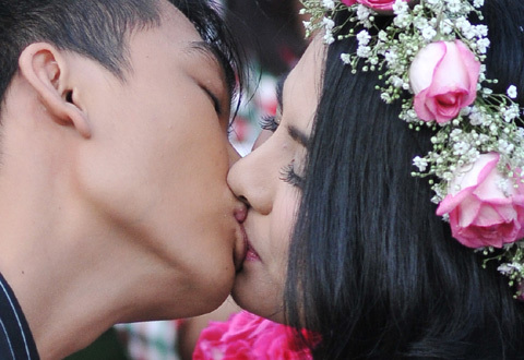 Để cảnh quay đạt hiệu quả, cả hai thường xuyên "được" đạo diễn yêu cầu ôm hôn nhiều lần. Bộ đôi diễn viên trẻ không quá ngại ngần để phối hợp ăn ý, thực hiện những màn khóa môi ngọt ngào, dù đôi lúc vẫn bị phì cười.