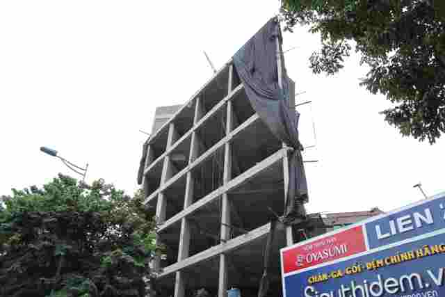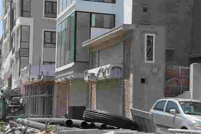 Nhà số 120 đường Đại Cồ Việt (quận Hai Bà Trưng) xém chút nữa thành nhà “tứ giác” với diện tích chỉ hơn 10 m vuông, tiếp tục quây kín để thi công.