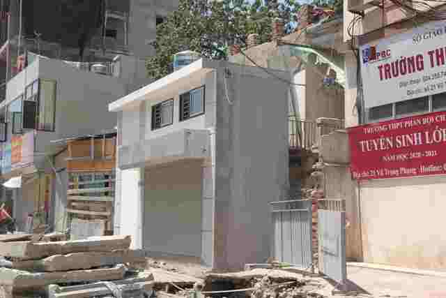 Tuyến đường Vũ Trọng Phụng (quận Thanh Xuân) cũng xảy ra nhiều trường hợp tương tự. Căn nhà số 15, sau GPMB, diện tích còn lại là 11,97m2, dù không đủ điều kiện cấp phép xây dựng, nhưng ki-ốt 1 tầng cao 4,2m vẫn được cất lên, gắn biển cho thuê.