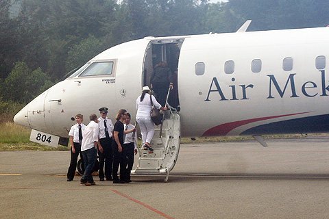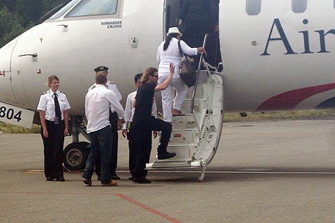 | Trước khi lên máy bay anh cũng nhiệt tình vẫy chào các nhân viên đường băng. |