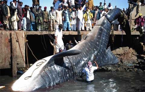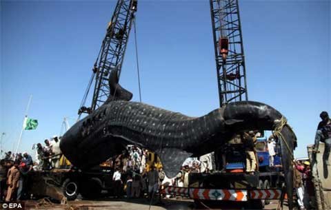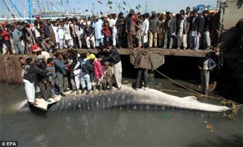 Một nhóm ngư dân Pakistan mới đây đã bắt được một con cá khổng lồ ở biển Ả