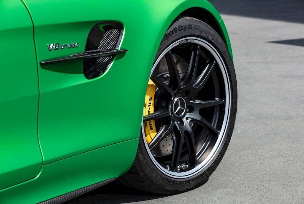 GT R sở hữu bộ mâm xe siêu nhẹ 10 chấu, kích thước 19 inch phía trước và 20 inch phía sau, đi cùng bộ lốp Michelin Cup 2. Tổng trọng lượng của AMG GT R cũng nhẹ hơn GT S đến 15 kg, dù xe có kích thước lớn hơn và tích hợp nhiều trang bị/tính năng hơn.