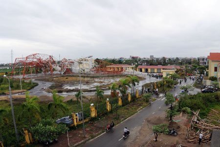 Ông Nguyễn Văn Tuấn, Chủ tịch UBND tỉnh Nam Định xác nhận: Tháp truyền hình bị bão đánh đổ sập vào 20h45 tối 28/10.