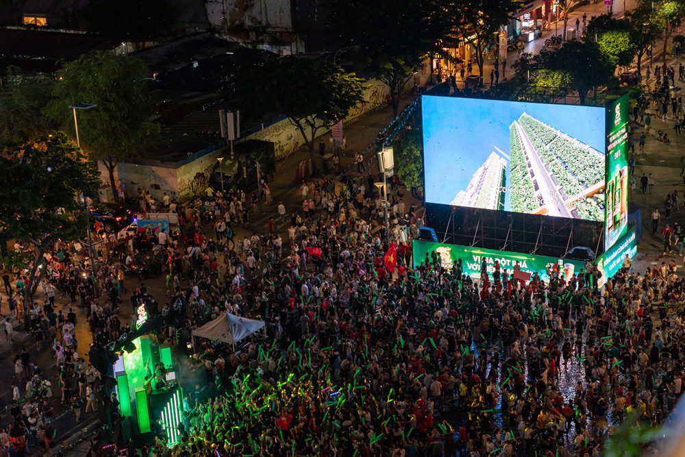 Nhìn từ trên cao, đồng loạt các màn hình LED lớn xuất hiện hình ảnh một công trình xanh ấn tượng chính là một trong những khoảnh khắc được nhiều người cổ đông viên xem trực tiếp trầm trồ, chia sẻ trên mạng xã hội.