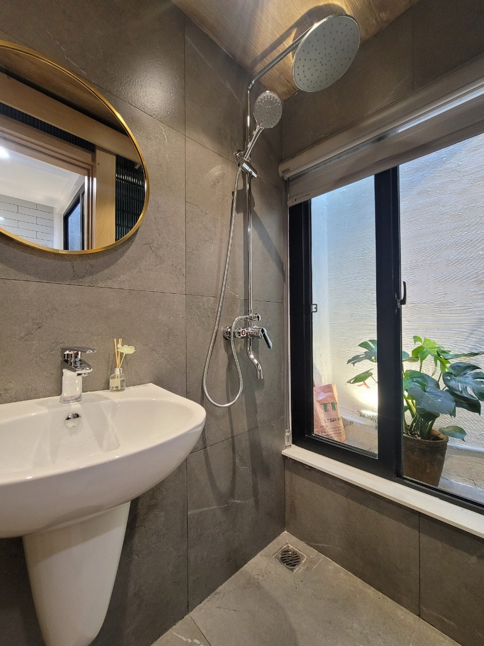 Mặc dù chỉ có 2 tầng nhưng nhà vẫn có 2 phòng ngủ, 2 vệ sinh, trong đó có 1 vệ sinh thiết kế sang trọng, đầy đủ bồn tắm ngâm và góc chill.