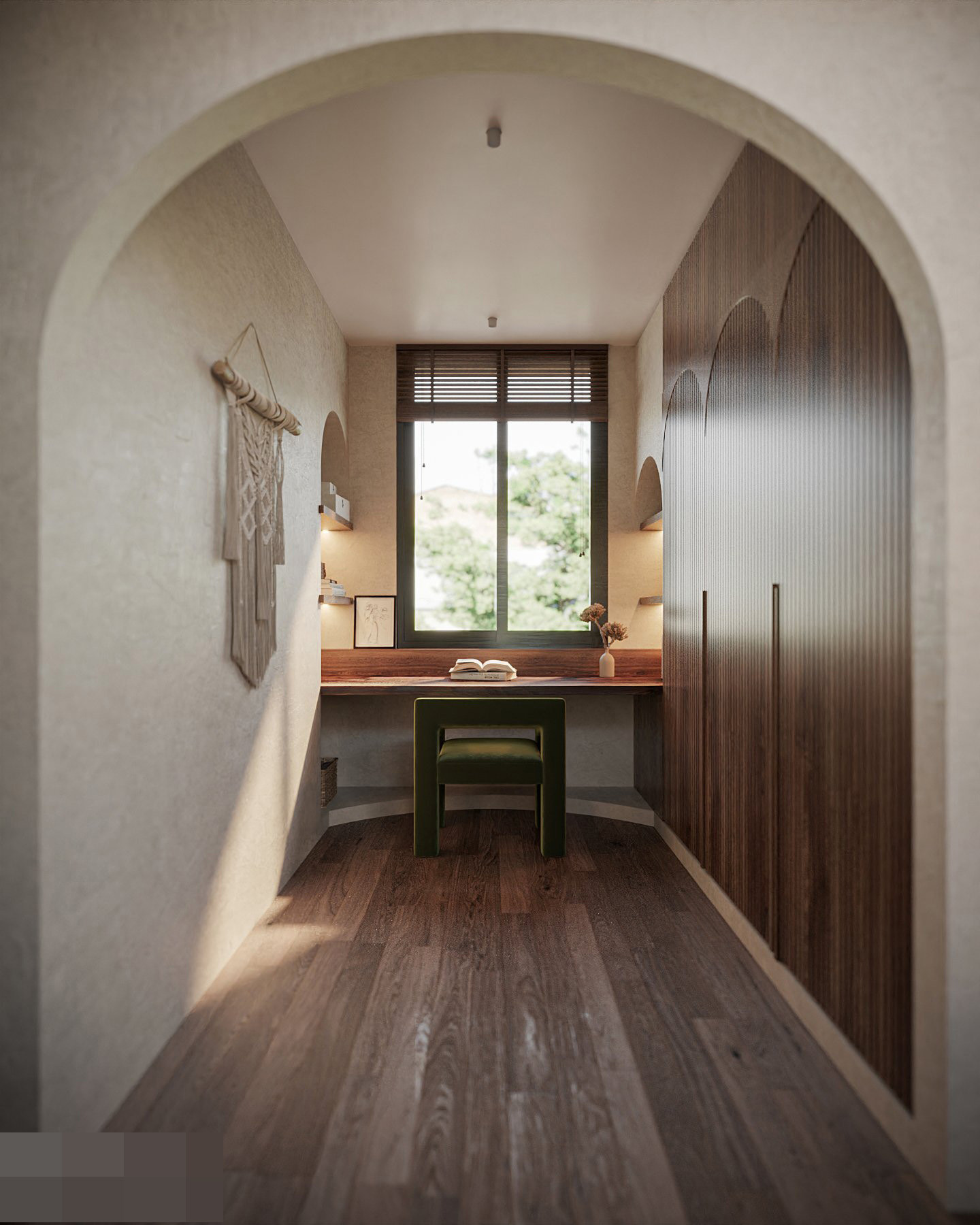 Phòng ngủ cho con với góc làm việc, thay đồ riêng.