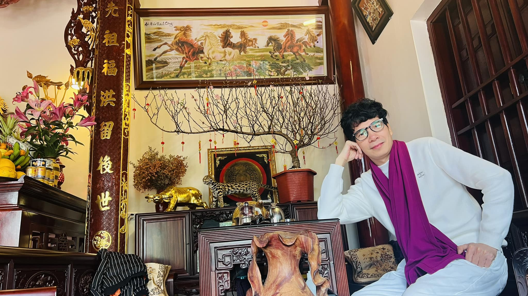 Căn nhà nhỏ xinh của Hồ Quang 8 vừa đủ tiện nghi sinh hoạt. Nhà ngói 3 gian đậm chất Bắc Bộ được Hồ Quang 8 xây dựng, chăm chút từng góc nhỏ. Không xây thành khu nhà thờ riêng biệt, không gian này vừa là nơi thờ cúng tổ tiên, vừa là nơi nghỉ ngơi, lấy lại năng lượng sau chuỗi ngày chạy show miệt mài của Hồ Quang 8.Là con út, lại chưa có gia đình nên Hồ Quang 8 cũng không xây dựng khu nhà quá to. Anh bảo, xây nhà xong dịch Covid-19 ập tới, không đi diễn nhiều nhưng vẫn đủ tiền để trả các khoản chi phí xây dựng, mua sắm.Hồ Quang 8 rất tâm đắc với ngôi nhà này. "Nhà của tôi không hoành tráng như nhiều người nhưng tôi thấy tự hào và thích thú khi không gian này hình thành. Bởi ai tới cũng cảm nhận sự gần gũi, chân thành, ấm cúng".Biết cách sắp đặt, dù nhỏ xinh, không bày biện quá nhiều đồ quý giá nhưng với Hồ Quang 8, thứ giá trị nhất của căn nhà chính là sự hiếu khách, sự thoải mái của bạn bè, người thân mỗi khi lưu trú.Phút thảnh thơi của Hồ Quang 8 ở sân nhà.