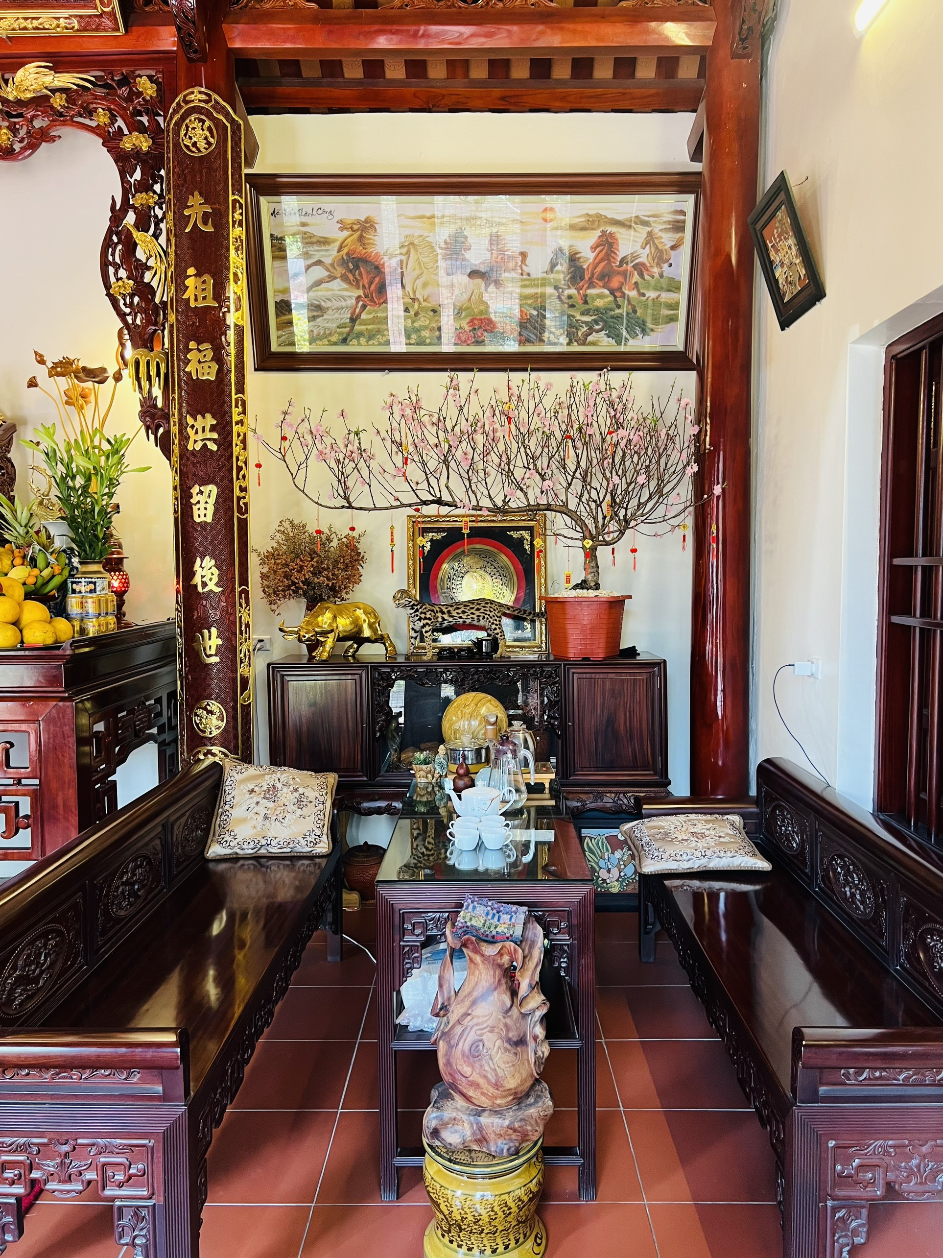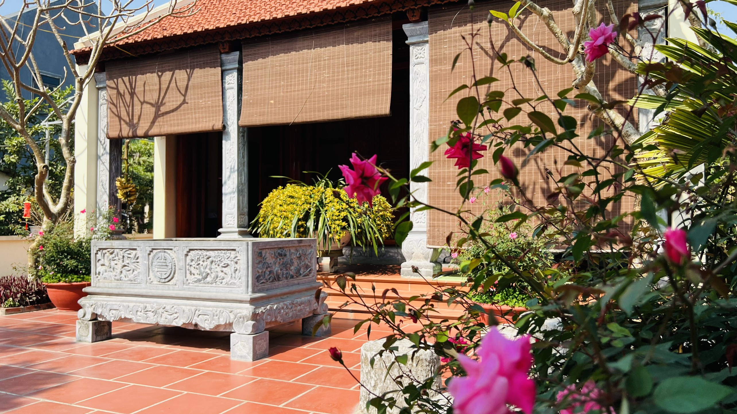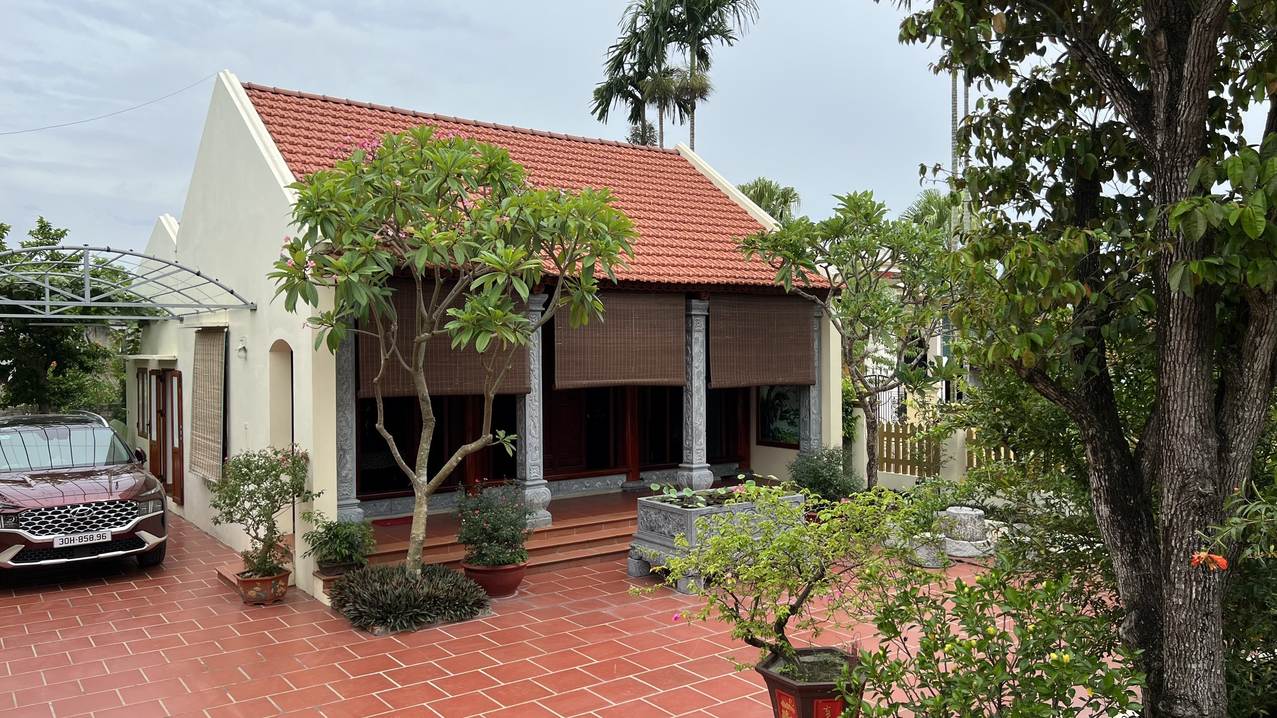 Anh chia sẻ với VietNamNet: "Khu đất là của bố mẹ tôi để lại, sau khi bố mẹ khuất núi, khu đất này gần như biến thành vườn hoang, trâu bò vào quần thảo suốt. Thực sự, khung cảnh rất ảm đạm, tiêu điều. Lúc trẻ, tôi vẫn mải mê say nghề nên chưa để ý nhiều, nhưng càng về sau, nhìn khung cảnh đó lại càng nhớ thương cha mẹ. Mong muốn có nơi thờ cha mẹ ấm cúng, nơi anh chị em tụ họp mỗi lần về quên nên tôi quyết định xây dựng năm 2019".
