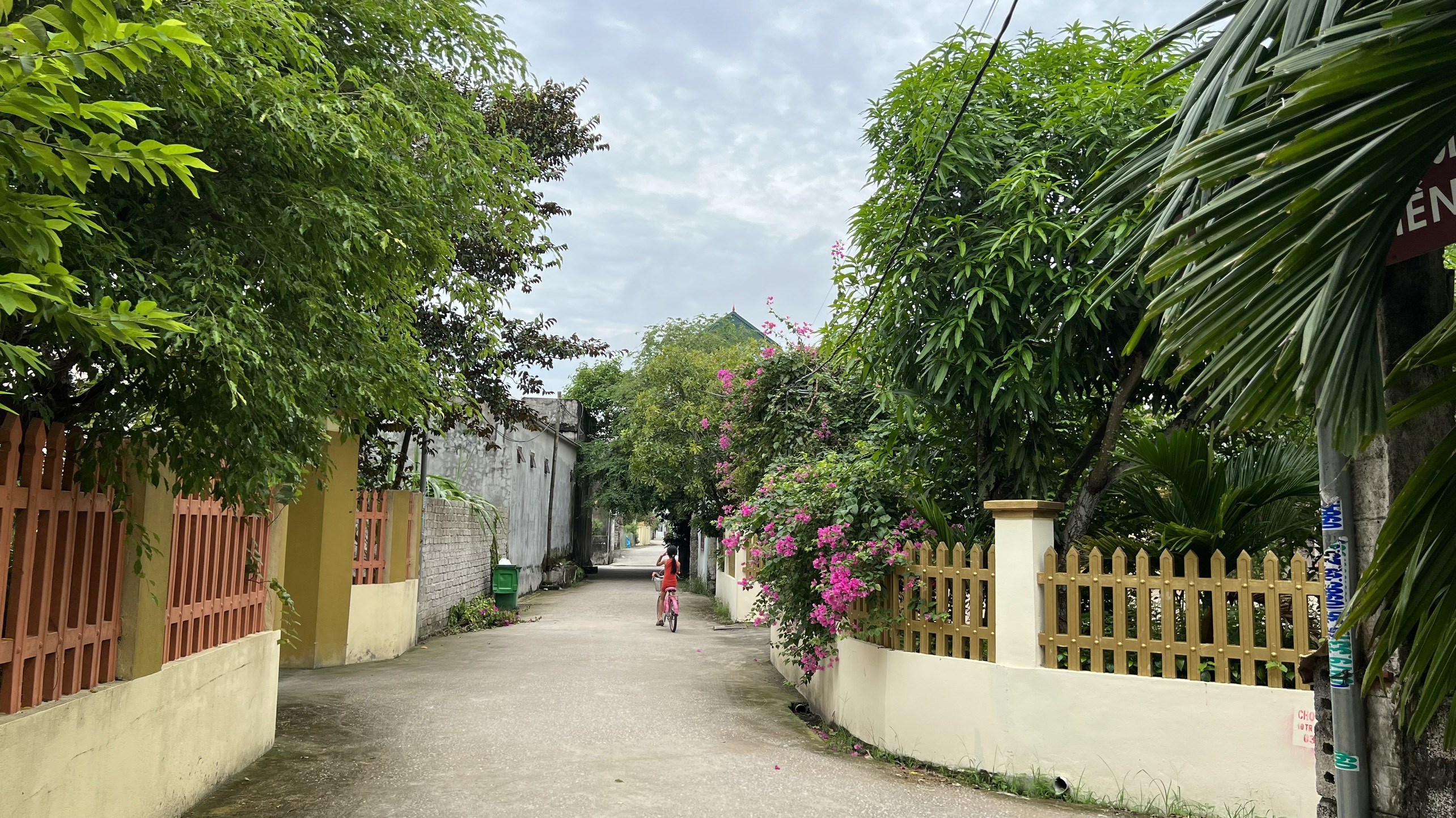 Lối nhỏ vào nhà rợp bóng cây và tô điểm thêm sắc hồng của hoa giấy.