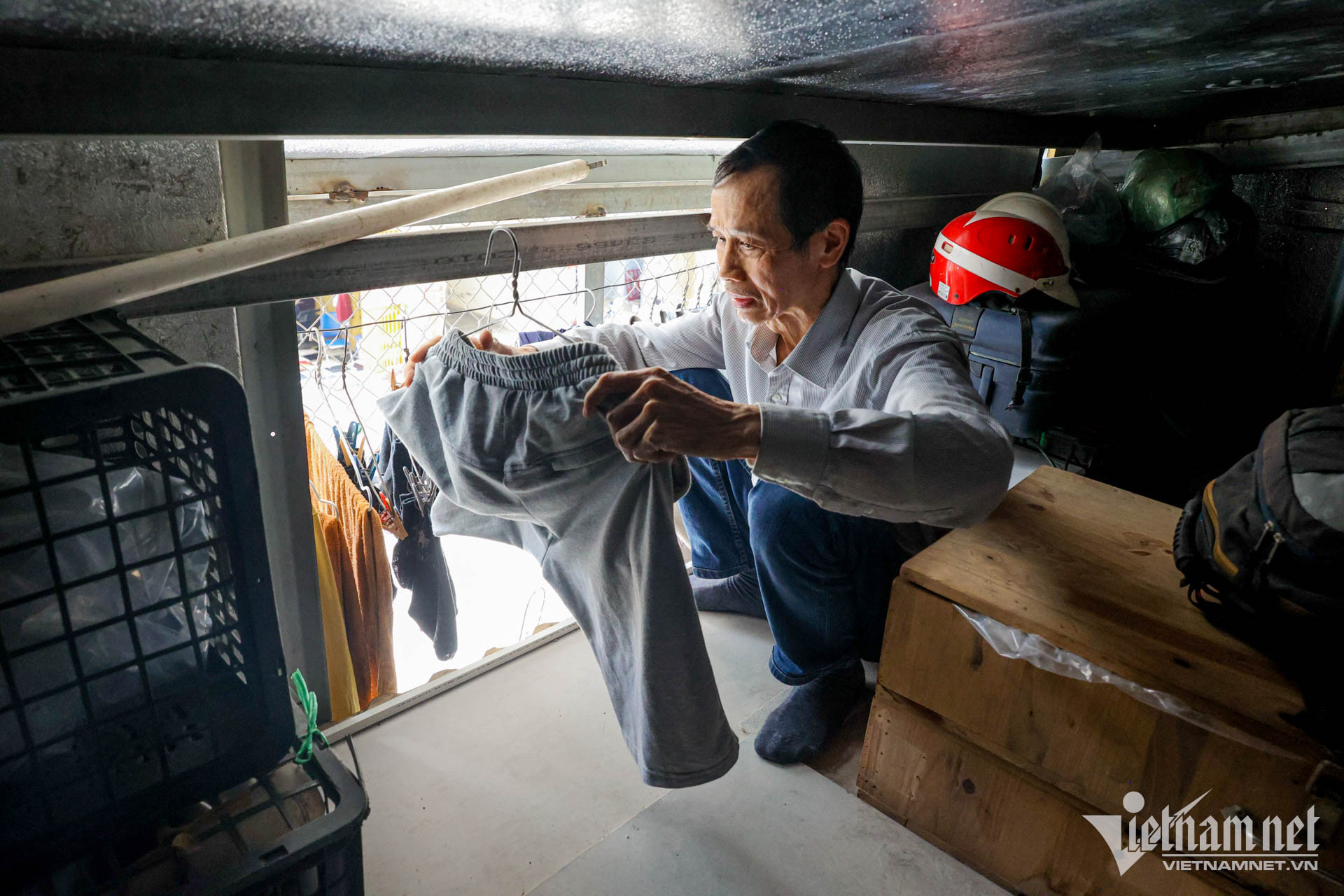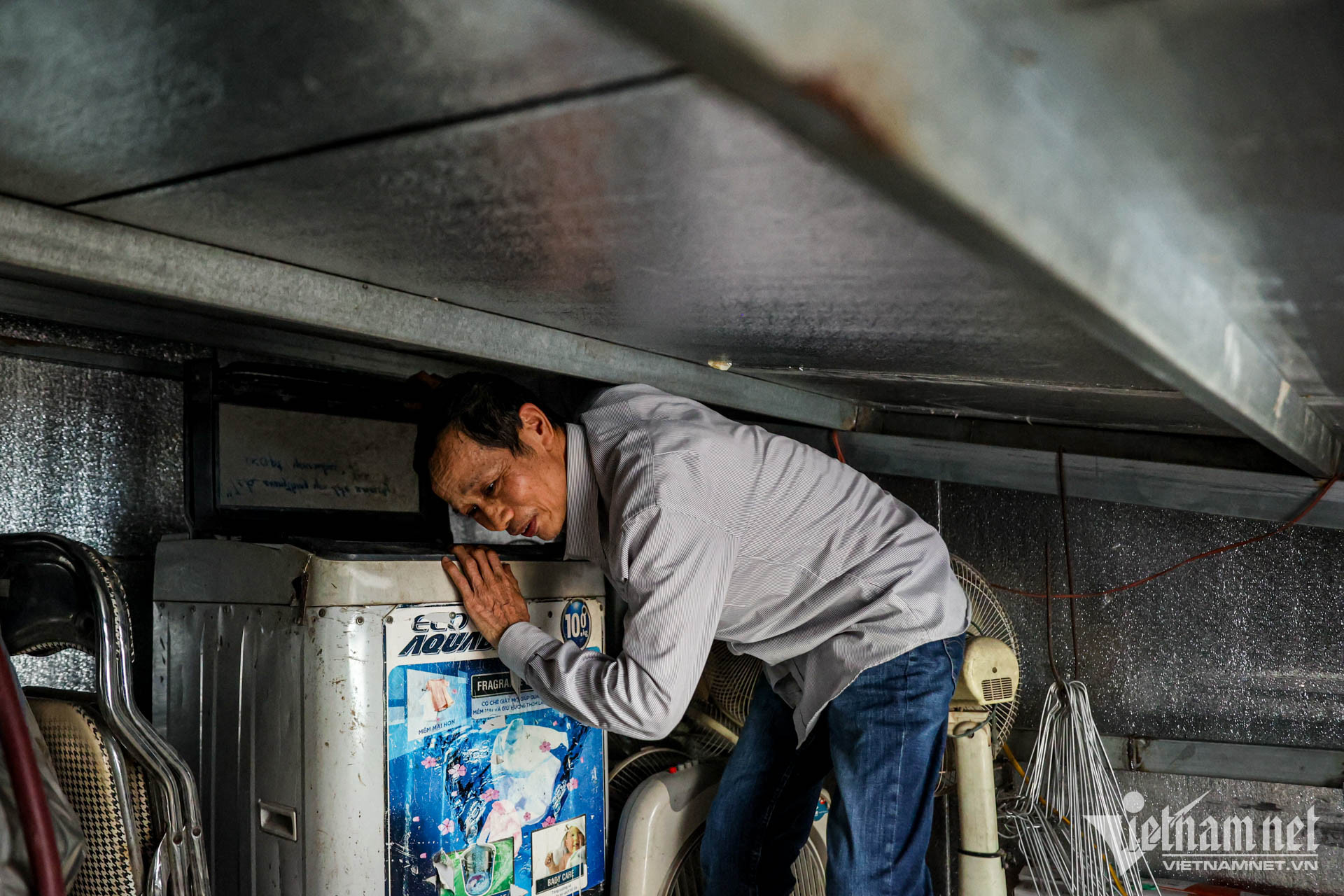 Vóc dáng nhỏ nhắn nhưng mỗi lần lấy quần áo, phơi đồ ông vẫn rất vất vả, bởi phần tum chỉ cao khoảng 1m và thấp dần ra phía ngoài.