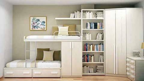 Một gia đình sống trong diện tích nhỏ thì phòng trẻ cũng bị giới hạn trong một không gian nhất định. Đối với các căn phòng có diện tích hạn chế như vậy thì việc lựa chọn đồ đạc luôn phải tính toán kỹ. Bạn nên lựa chọn các đồ đơn giản, nhỏ gọn, nhiều ngăn kéo... Trên thực tế, với những đồ nội thất thiết kế thông minh thì những căn phòng nhỏ này vẫn đảm bảo tính thẩm mỹ và đủ cho nhu cầu sinh hoạt của trẻ.