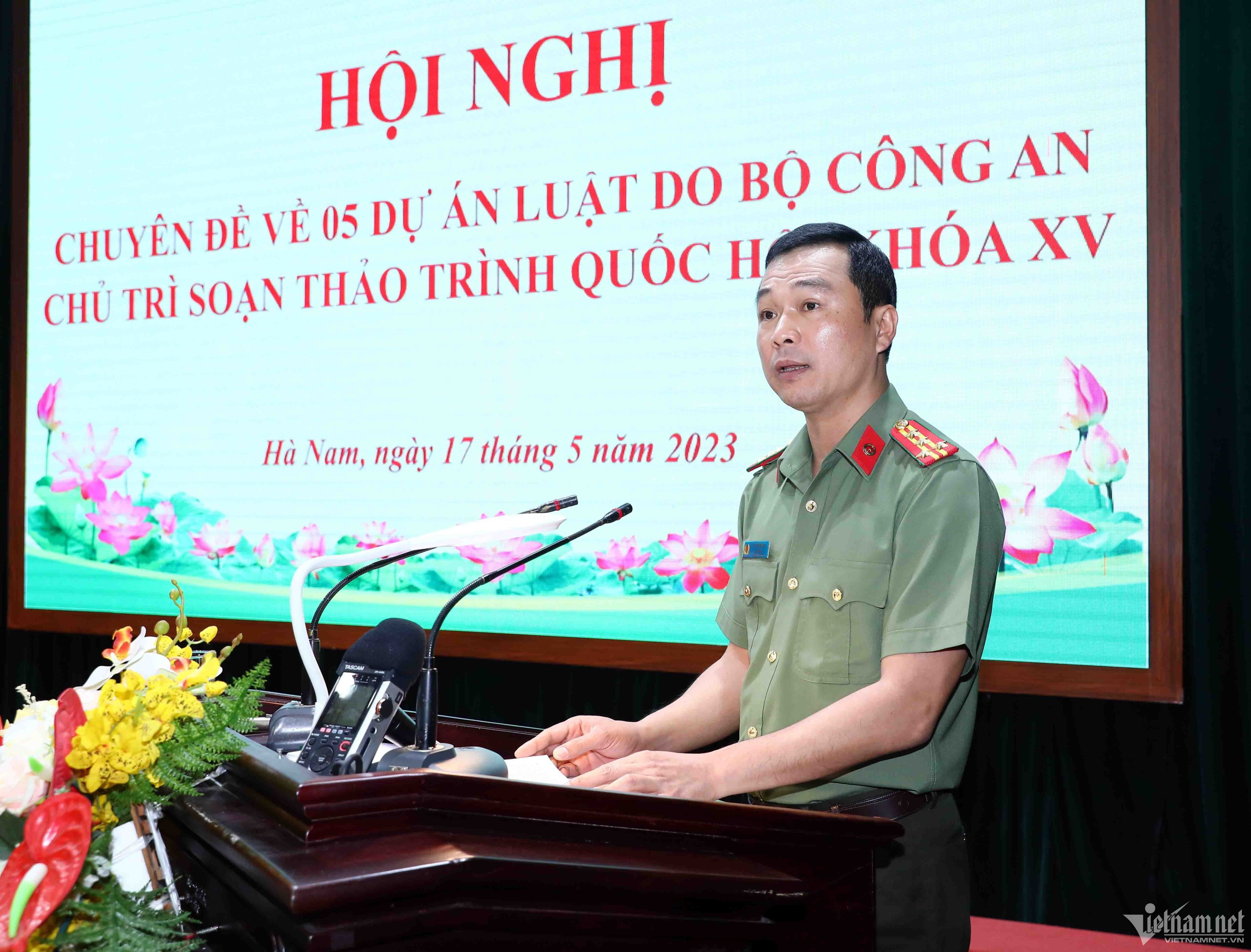 Sáng 17/5, Hội nghị chuyên đề về 5 dự án luật do Bộ Công an chủ trì soạn thảo trình Quốc hội khoá XV do Đại tá Tô Anh Dũng, Giám đốc Công an tỉnh Hà Nam chủ trì.