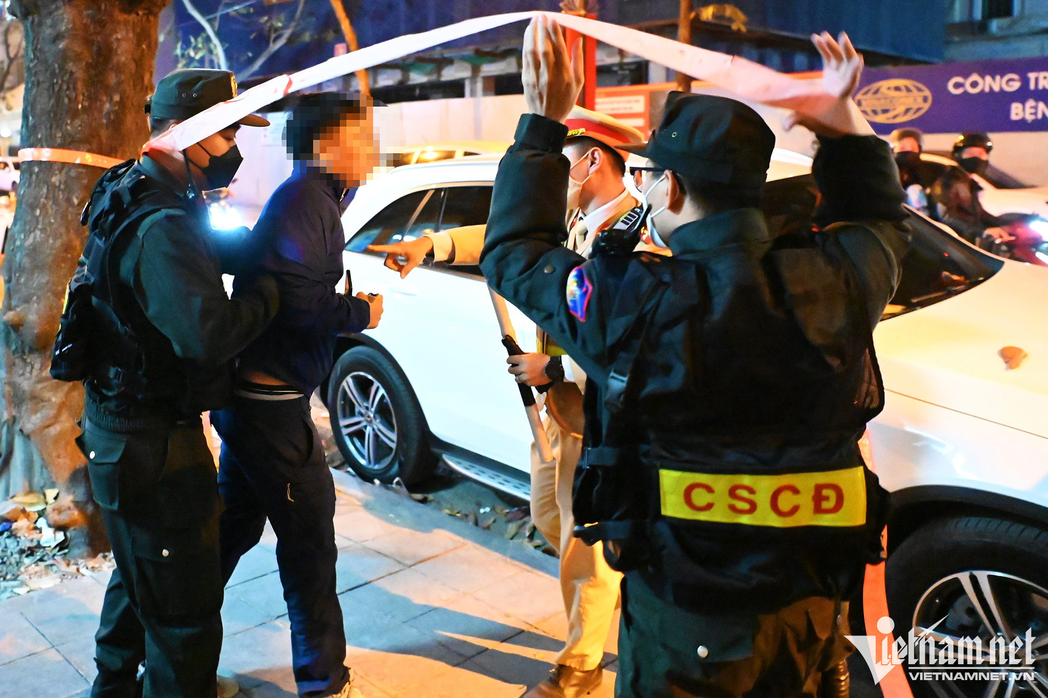 Lực lượng Cảnh sát 141 (Công an TP Hà Nội) khống chế đối tượng chống đối tại chốt kiểm tra (Ảnh: Đình Hiếu)
